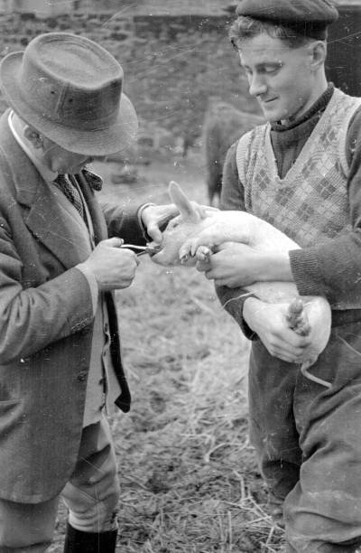 1. Restraint: Gently holding the piglet to avoid injury during the procedure.